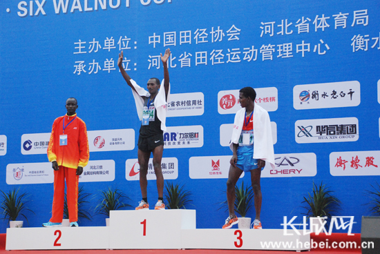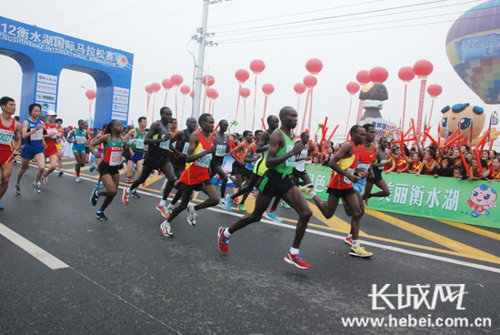 長城網(wǎng)衡水9月22日電(王永宏 扈煒)今日8時(shí)02分,2012衡水湖國際馬拉松賽鳴槍開跑,在衡水湖國際馬拉松賽廣場,來自世界26個國家和地區(qū)的參賽選手及馬拉松愛好者沖出起點(diǎn)。經(jīng)過激烈角逐,來自埃塞俄比亞選手雷格塞·海路·梅克楠以2小時(shí)8分7秒、黛米西·埃塔勒瑪胡·基達(dá)妮以2小時(shí)28分3秒的成績包攬全程馬拉松賽男女組冠軍。