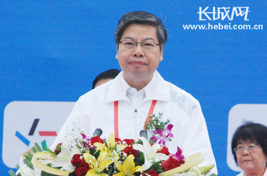 衡水市委書記劉可為在2012衡水湖國際馬拉松賽上致辭。王永宏 攝
